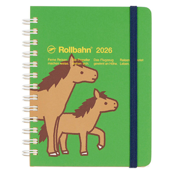 商品の特徴 2026年の干支を配したロルバーンダイアリー。仲良く寄り添うウマの親子を描いています。コンパクトなメモダイアリーとして人気のMサイズ【2026年カレンダー・スケジュール帳】、【26calendarbungu】