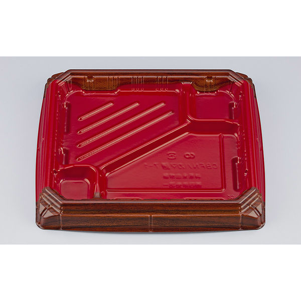 | 商品の特徴 | 環境に配慮した素材を用い、テープ留め作業が不要な嵌合性が強い弁当容器。側面形状が折箱のような重厚感で高級感を演出。 | ||