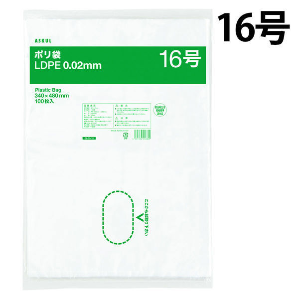 アスクルオリジナル ポリ袋(規格袋) LDPE・透明 0.02mm厚 16号 340mm×480mm 1袋(100枚入) オリジナル(わけあり品)