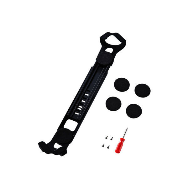 - 本体×1、ネジ×4本(2本はあらかじめ本体に取付けられています)、厚み調整スポンジ×4枚(厚と薄各2枚)、プラスドライバー×1本