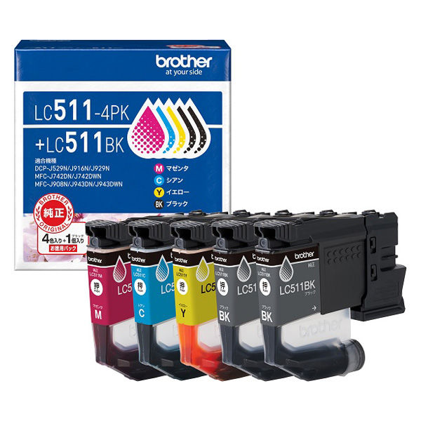 ブラザー 純正インクカートリッジ LC511ー4PK+LC511BK 4色パック+ブラック 1パック(5個入) オリジナル