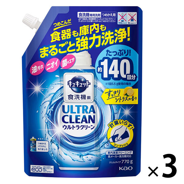 キュキュット ウルトラクリーン すっきりシトラスの香り 詰め替え 770g 1セット(3個) 食洗機用洗剤 花王 (旧品)