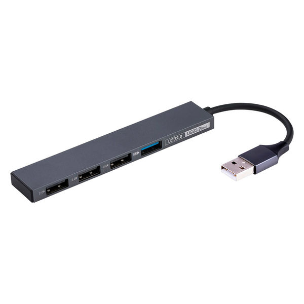 ナカバヤシ USB3.2Gen1+2.0 4ポートハブ 極薄極細 グレー UH-3254GY 1個