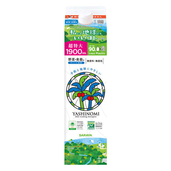 ヤシノミ洗剤 食器用洗剤 無香料・無着色 詰め替え用 超特大 1.9L 紙パック 1個 サラヤ