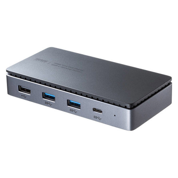 最大4Kの解像度に対応し、HDMIとVGA映像出力端子を備えた2画面映像出力ができるコンパクトなドッキングステーション。