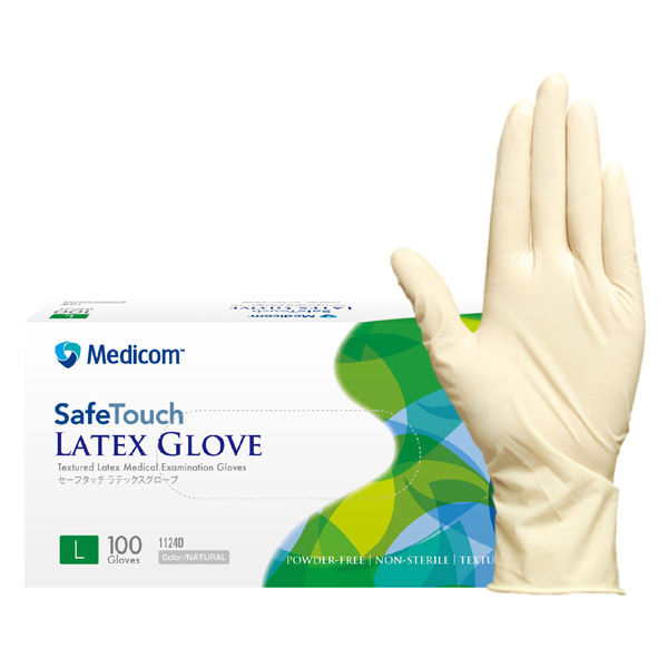 メディコムジャパン セーフタッチ ラテックスグローブ パウダーフリー L 1124D 手袋 使い捨て 粉なし 天然ゴム 1箱(100枚入)