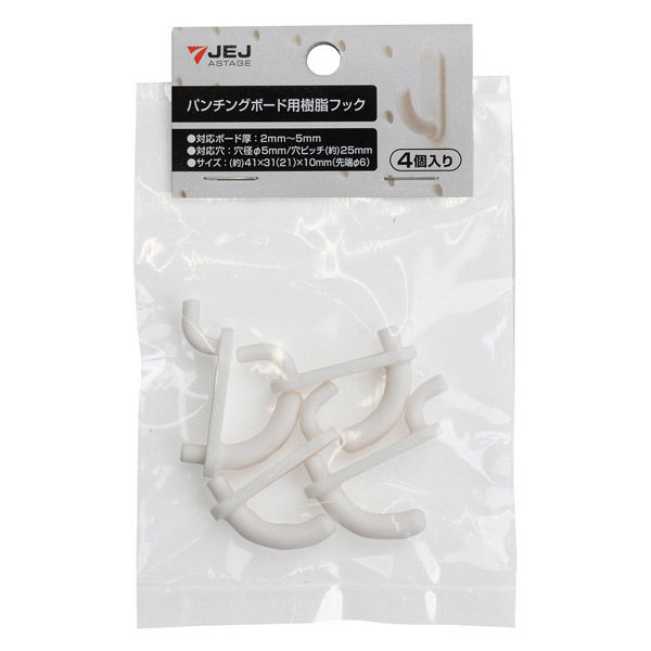 JEJアステージ パンチングボード用樹脂フック4Pホワイト 4528302911610 1袋(4個入)