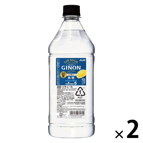 アサヒ GINON ジノン レモン 40度 1.8L ペット 1セット(1本×2) リキュール ジンベース 業務用 大容量