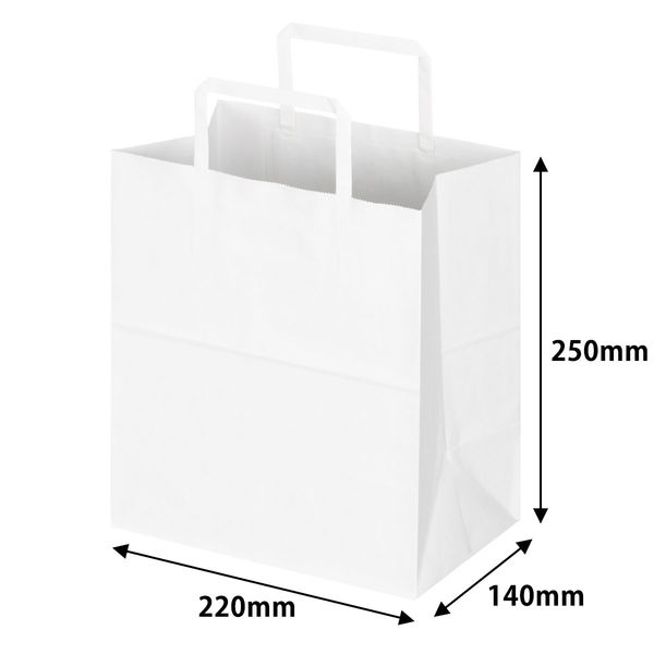 平紐クラフト紙手提袋ベーシック220×250×140mm 白 1セット(1袋(10枚入)×18) オリジナル
