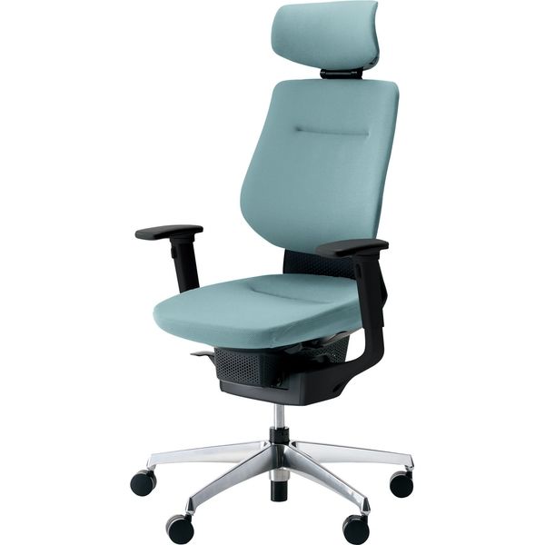 【組立設置込】コクヨ イング クッション ヘッドレスト 可動肘 アルミ脚 ナイロンキャスター BK×アッシュターコイズ 1脚(直送品)