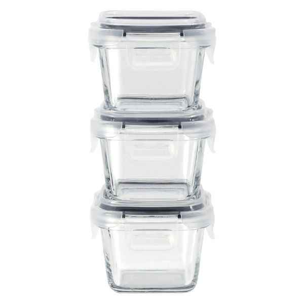 本商品:耐熱ガラス 3P 保存容器 スクエア 150mL 1個(3個セット) 電子レンジ・食洗器対応 シービージャパン