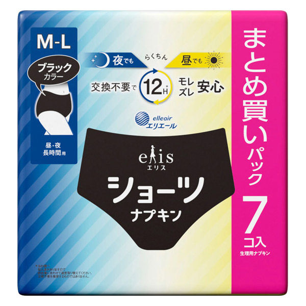 エリス ショーツナプキン M~L 昼・夜 長時間用 ブラックカラー 1パック(7枚入) 夜用 生理用品 大王製紙
