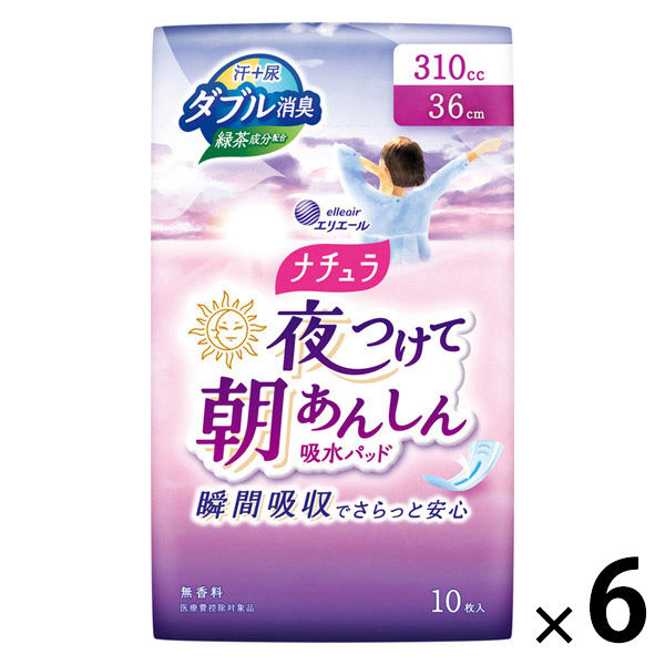 本商品:ナチュラ夜つけて朝あんしん 吸水パッド 36cm 310cc 1セット(10枚入×6パック)尿もれ 軽失禁 エリエール 大王製紙 |