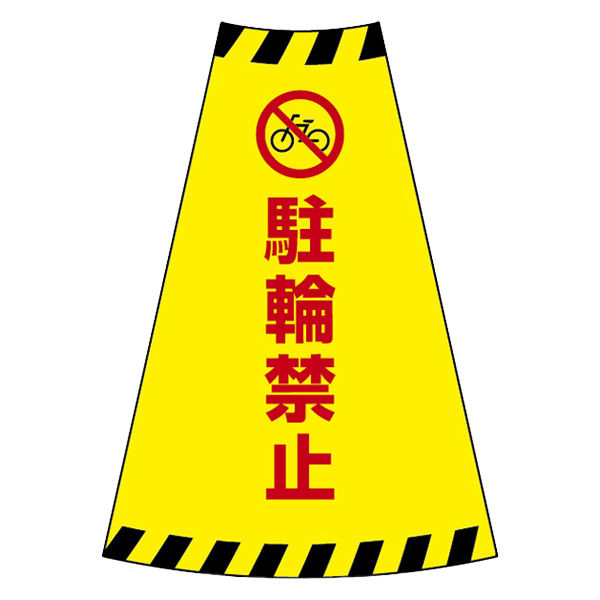 「駐輪禁止」のコーン用生地カバーです。お手持ちのコーンに被せるだけで案内スペースになります。(D.N)