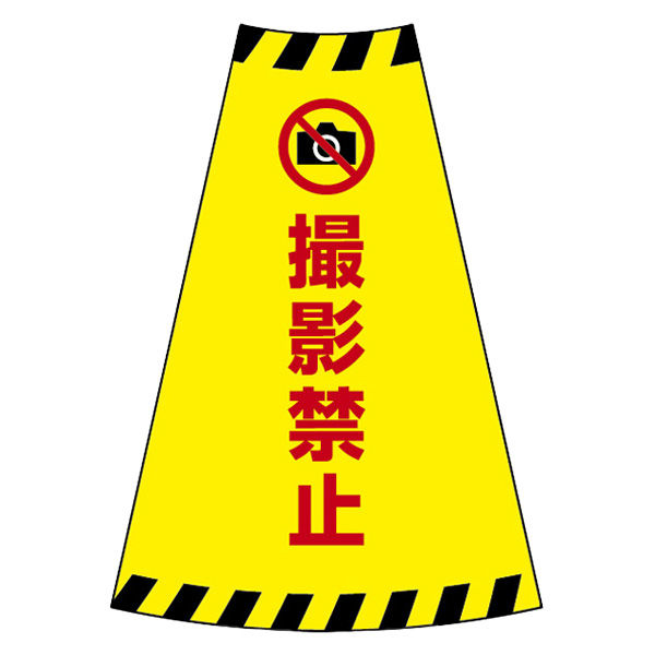 「撮影禁止」のコーン用生地カバーです。お手持ちのコーンに被せるだけで案内スペースになります。(D.N)