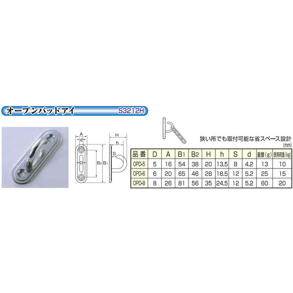ひめじや オープンパッドアイ OPDー8 26mm×81mm 穴幅:56mm 穴径:Φ5.2 金具 1100100013303 1個(直送品)