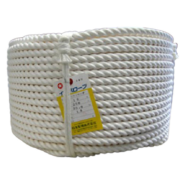 | 商品の特徴 | 国産糸ビニロンを100%使用しているロープです。 扱いやすく摩擦に強く、耐候性に非常に優れています。 原糸の形状は紡績糸(スパン糸)です。 耐候性は合成繊維の中で最も優れており、漁業・トラックロープ・建築・酪農・遊具などに幅広く使用されております。 ロープの色は白ですが、染色することが出来るため、色を染めて家のバルコニーの手すりや、産科での産み綱などにも使用されました。 | ||