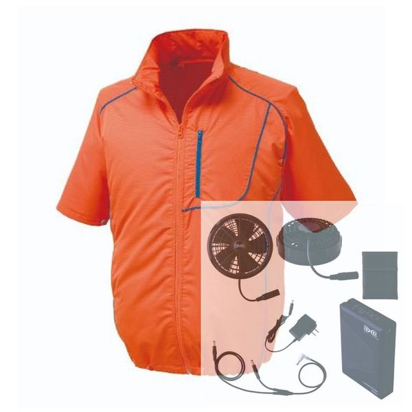 | 商品仕様1 | ●空調服(R)のウエアとファンを起動するために必要なデバイスをワンパックにしたスターターキット●長袖を推奨していない物流・運送業の方、手元の風が作業に影響する方向け半袖空調服です●ワークだけでなくスポーツ・アウトドアまで多目的にご使用いただけます●上蓋と羽根が水洗いできるカラーファンと、ハイパワーで長時間連続接続のバッテリーがセットになったスターターキットが付属しています●セット内容:●空調服(R)ワンタッチファン/FA25112、空調服(R)バッテリー/BT25211、空調服(R)ケーブル/CB25311、空調服(R)急速AC充電アダプター/CG25411、空調服(R)バッテリーケース/CA25510 | カラー | オレンジ/ネイビー |