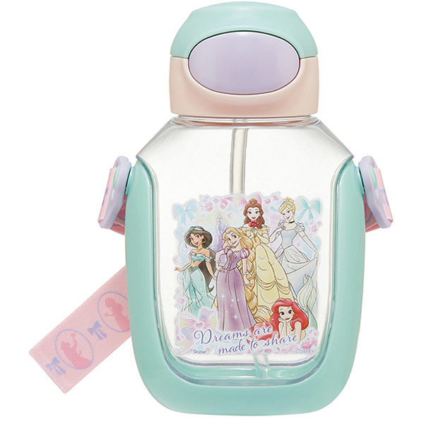| 商品の特徴 | フタがワンプッシュでオープンする、ストロー飲みタイプのボトル(水筒)。やや平らな形で小さな手でも掴みやすい。本体にはクリアで中身が見えやすく丈夫な素材を採用。開けるとシリコーンゴム製のストローが飛び出てきて飲みやすい。肩にかけて持ち運べるショルダーベルト付き。名前シール付き。 | ||