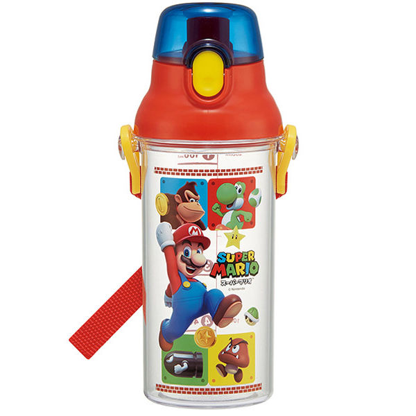 | 商品の特徴 | こまめな水分補給をサポートしてくれる目盛り付きのボトル(水筒)。1回の給水分として100mlの目盛り付き。飲んだ量が一目で分かりやすい。時間を目安に効果的に水分補給ができる。本体には割れにくくて透明度の高い樹脂を使用。キャップを開けるとすぐ飲めるダイレクト飲み口。キャップはワンプッシュ式で簡単にオープン。氷が入れやすい広口タイプ。肩に掛けて持ち運べるショルダーベルト付き。ショルダーベルトは取り外せ、長さ調節もできる。名前シール付き。食洗機に対応。 | ||