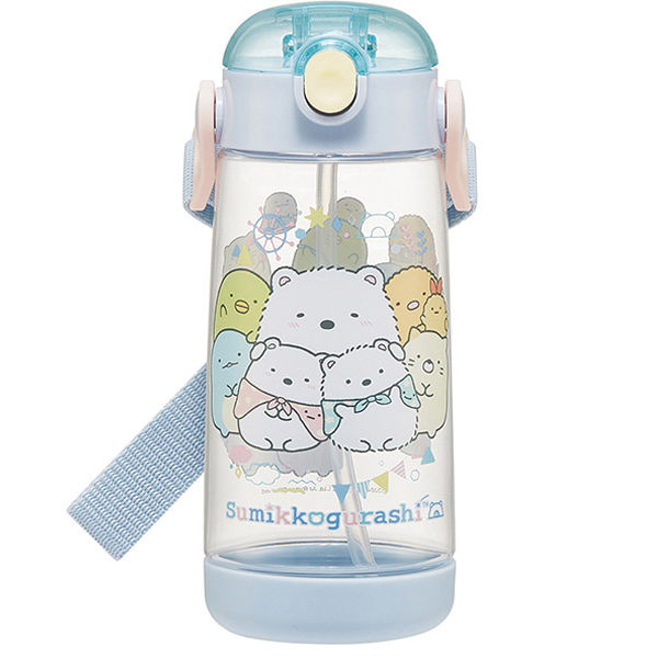 | 商品の特徴 | 軽量でコンパクトなストロー式ボトル(水筒)。ストロー飲み用で、ストローの飲み口で飲む練習が楽しくできる。キャップはプッシュ式で簡単オープン。本体とキャップに透明度が高くて丈夫なPET(飽和ポリエチレン樹脂)を使用。飲む時にキャップが戻らないキャップロック設計。取り外し可能なショルダーベルト付き。ショルダーベルトにネームプレート付きで名前シール付き。底部に衝撃を和らげるクッション付き。食洗機は使えない。 | ||