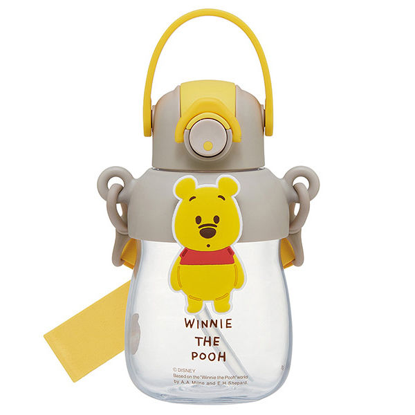 | 商品の特徴 | 可愛いラバーマスコット付きのストローボトル(水筒)。本体は透明度が高くて丈夫。ワンプッシュオープンストロータイプ。口当たりが良く飲みやすいシリコーン製飲み口。キャップを後ろに倒すと固定キャップロック設計。キャップはワンプッシュでオープン。ロックリングが誤作動でキャップが開くのを防ぐ、オープン防止ロック機能付き。持ち運びやすいソフトなハンドル付き。長さ調節できるショルダーベルト付き。食洗機は使用不可。煮沸消毒や電子レンジでの加熱は不可。保冷機能は無い。 | ||
