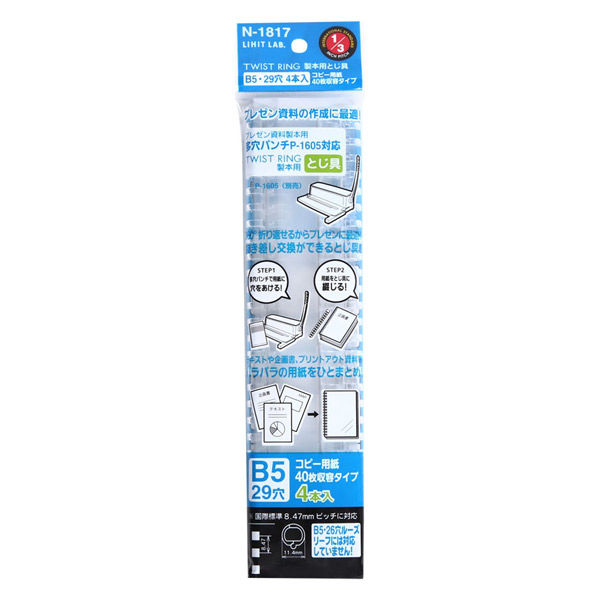 本商品:リヒトラブ ツイストリング製本用とじ具 B5 ノートリーフ40枚 N1817 1組(4本) |