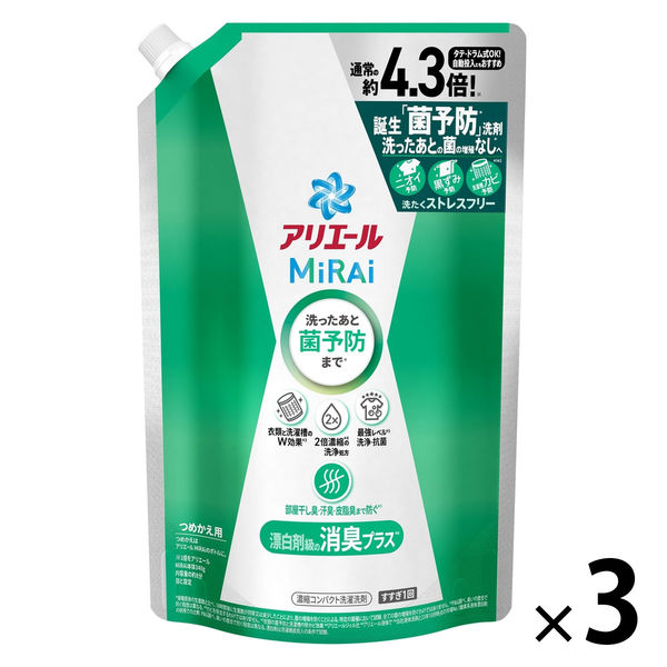 アリエール MiRAi(ミライ) 消臭プラス ウルトラジャンボ 詰め替え 1.22kg 1セット(1個×3) 洗濯洗剤 P&G(旧品)