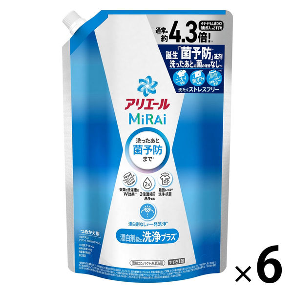 アリエール MiRAi(ミライ) 洗浄プラス ウルトラジャンボ 詰め替え 1.22kg 1箱(6個入) 洗濯洗剤 P&G(旧品)