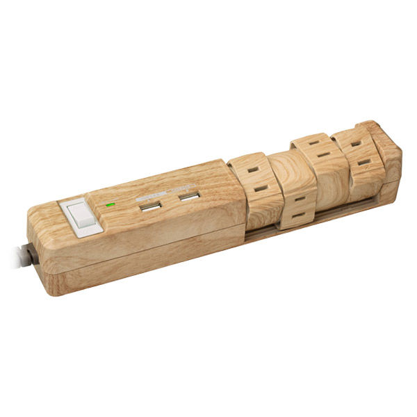【USB TypeーA対応】便利な回転式タップ。インテリアになじむウッド調