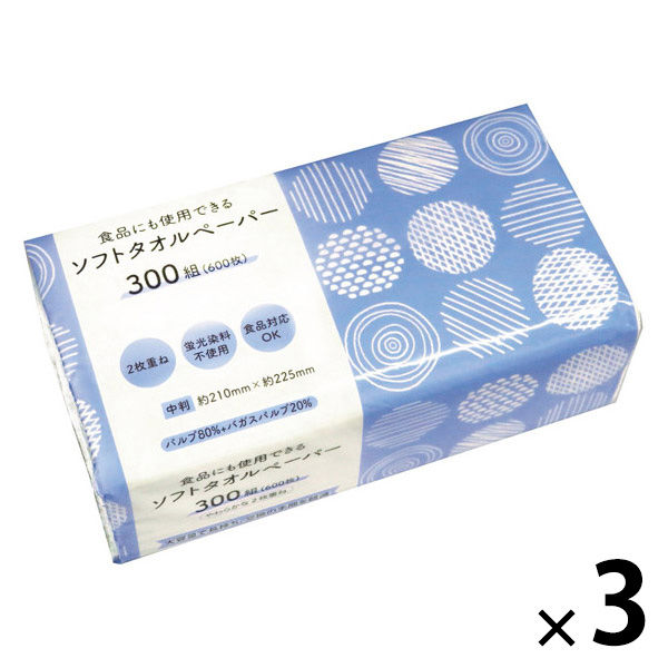 食品にも使用できるソフトタオルペーパー キッチンペーパー ダブル 300組(600枚)1セット(1パック×3)服部