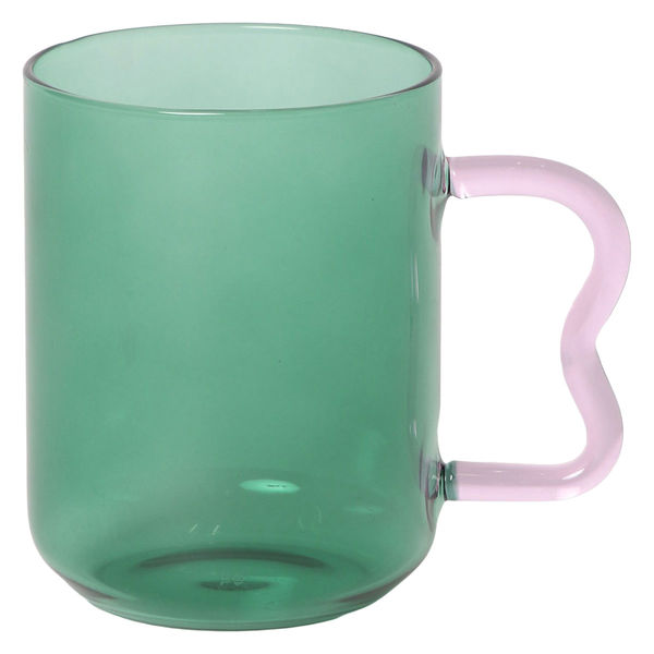 | 商品の特徴 | 取っ手が手になじむウネウネした形が特徴的なガラスマグカップ。耐熱ガラスなので、温かい飲み物も入れられます。ツートーンカラーのガラスは透明感があり、特徴的な形なのでちょっとしたギフトにもオススメです。小物入れなど、インテリアとしてもかわいいデザイン。 ■容量:430ml ■耐冷耐熱温度:ー20℃/100℃ ■食洗機:不可 ■電子レンジ・オーブン・IH・直火:不可 | ||