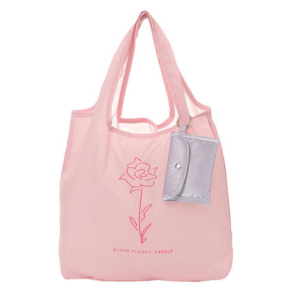 FLOWERポーチ付きエコバッグ ピンク LAKOLE/ラコレ