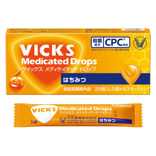 ヴイックス メディケイテッド ドロップH はちみつ 20個 大正製薬 のど飴 のどの痛み 炎症 殺菌 消毒