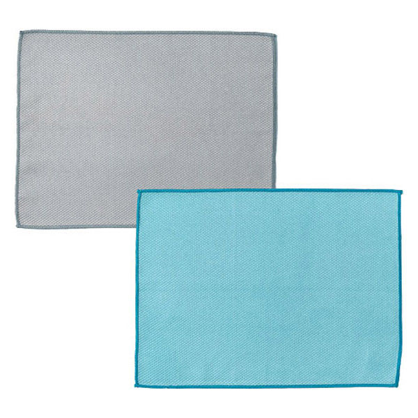 カワタキコーポレーション 窓や鏡に拭き跡が残りにくいクロス2色組(ブルー・グレー各1) 1パック(2枚入:2色×各1)
