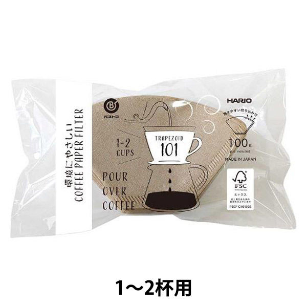| 商品の特徴 | 1~2杯用のコーヒーフィルター。底が平らになっていて、お湯がコーヒーの粉全体になじみやすい台形型フィルター。切り込み付きで開きやすいです。FSC認証で環境に優しく、大容量の100枚入りでコスパも良く、お財布にも優しい商品です。安心の日本製。#コーヒーペーパーフィルター 珈琲 粉用 | ||