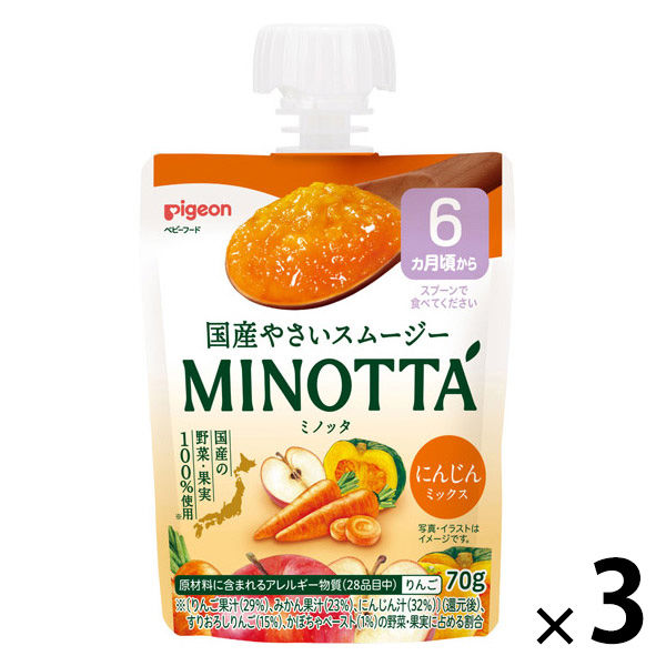 (6カ月頃から)国産やさいスムージー MINOTTA(ミノッタ) にんじんミックス 1セット(1個(70g)×3) 離乳食