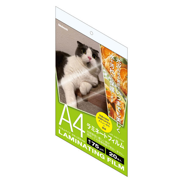 | 商品の特徴 | ランニングコストが抑えられて経済的な75μmのラミネートフィルムです。学校での掲示物や、オフィスでの資料掲示、飲食店でのメニュー掲示など、イベントのPOPなどの様々なシーンで活躍します。焼却しても有害物質が発生しない環境に優しい素材を使用しています。油性マジックならフィルム面に記入も可能です。学校/オフィス/店舗/イベント/掲示物/POP/メニュー/写真保護/掲示物。 | ||