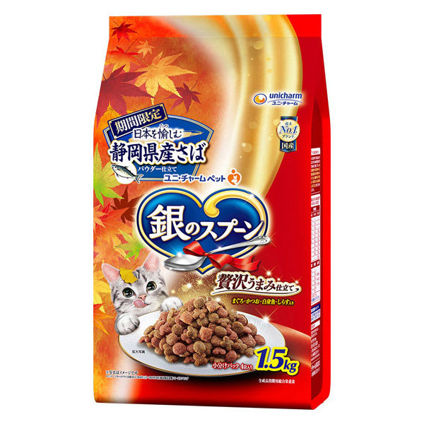 数量限定 銀のスプーン 贅沢うまみ仕立て 静岡県産さば 国産1.5kg 1袋 ユニ・チャーム キャットフード