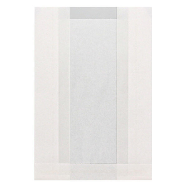 身体にも環境にもやさしいフッ素フリーの窓付耐油袋。横マチ付きなのでボリュームのある調理パンや菓子パン、揚げ物などに最適です。