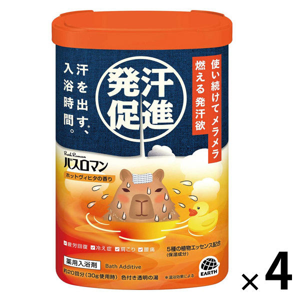 入浴剤 薬用 粉末 バスロマン ホットヴィヒタの香り 600g 発汗 1セット(1個×4) 湯色 色付き透明タイプ アース製薬