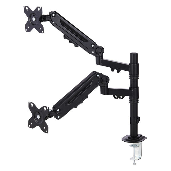 モニターの位置を自由に調節でき、デスクのスペースを有効活用!40インチまでのモニターに対応するロングアームのメカニカルスプリング式ダブルモニターアームです。