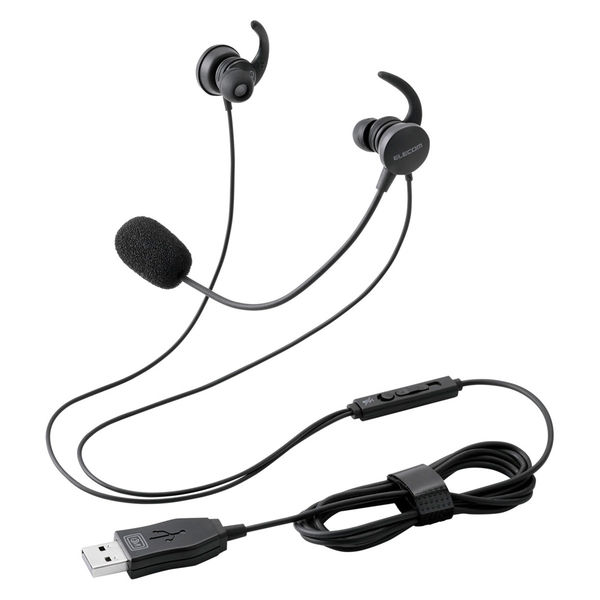 エレコム ヘッドセット 有線 USB 接続 カナル型 マイク付 高音質 音量調整 ブラック ECHS-EP21SUBK 1個