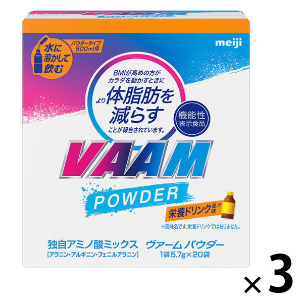 VAAM(ヴァーム) パウダー 栄養ドリンク風味 1セット(1箱(20袋入)×3) 機能性表示食品 明治 500ml用
