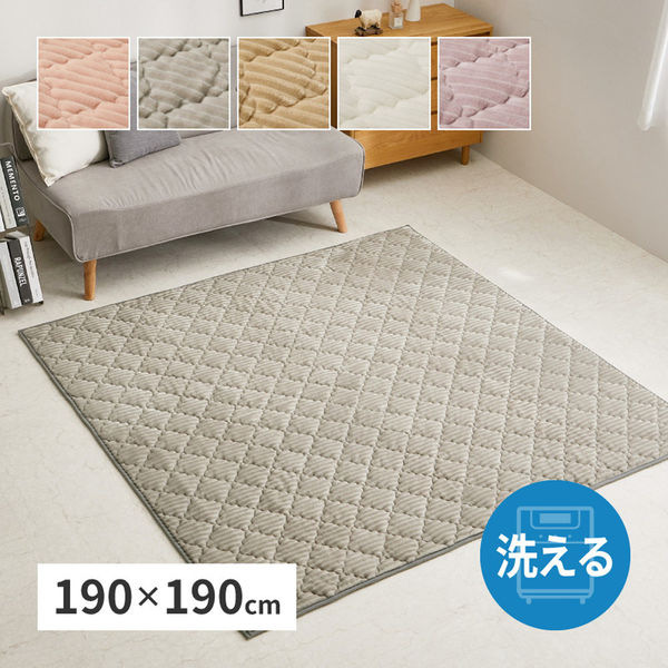 | 材質 | 表面:ポリエステル100% ジャガードフランネル260g/平方m 中材:ポリエステル綿150g/平方m+ウレタン5mm 裏面:不織布150g/平方m ドット滑り止め付き | 寸法 | 190×190cm |