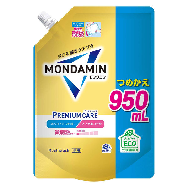 マウスウォッシュ 洗口液 口臭 モンダミン プレミアムケア ホワイトミント つめかえ 950mL 微刺激タイプ ノンアルコール アース製薬