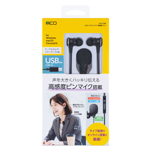 ナカバヤシ USBイヤホンマイク 高感度マイク搭載 ブラック UHP-10BK 1個