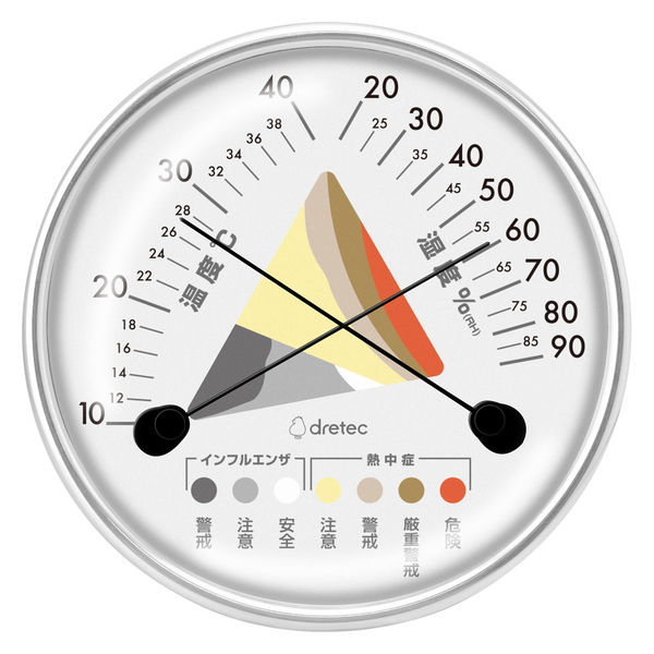 アナログ温湿度計 熱中症・インフルエンザ危険度表示 電池不要 壁掛け可能 ドリテック O-329GY 1個