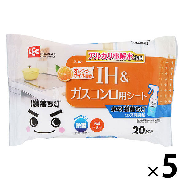 水の激落ちくん IH&ガスコンロ用 お掃除シート 除菌 消臭 洗剤不使用 5パック(20枚入×5)レック