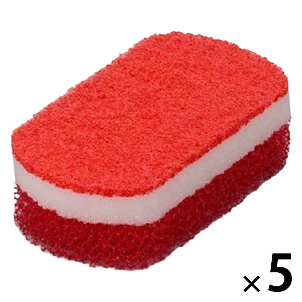 キッチンスポンジ 3層構造 トリプルスポンジ 食器用スポンジ スマートホーム2 レッド 赤 337809 5個 オーエ